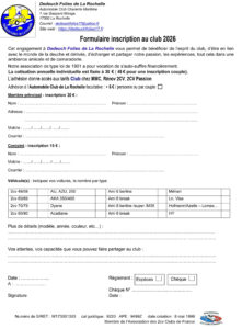 (cliquer dessus pour l'agrandir) Bulletin d'inscription à envoyer une fois rempli au Trésorier : Gérard DONAT 58, rue de l'Océan 17137 Esnandes .